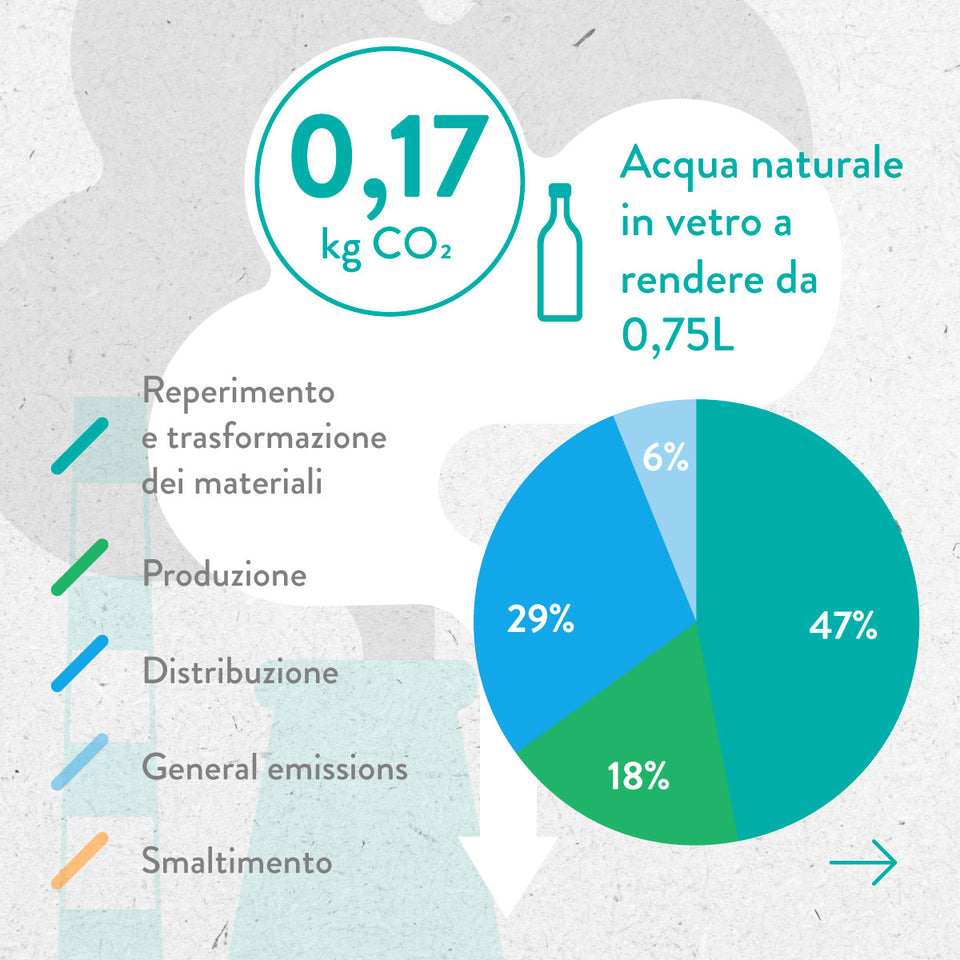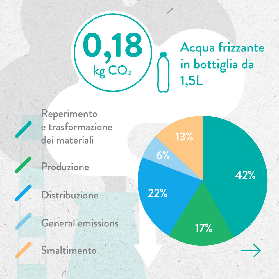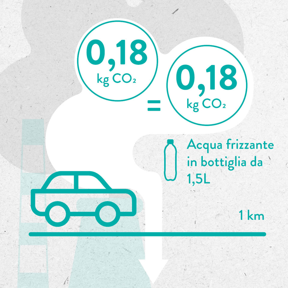 Un’auto a benzina di dimensioni medie che percorre 1 Km, ad esempio, emette in media 0,18 Kg di CO2e, corrispondenti alle emissioni calcolate per la produzione di una bottiglia di acqua frizzante WAMI da 1,5 litri.