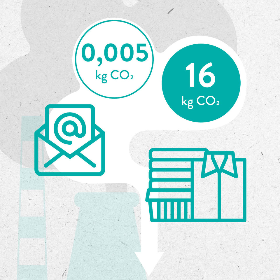 Mandare un’email con un allegato di grandi dimensioni, invece, consuma 0,005 Kg di CO2e, mentre un capo di abbigliamento medio ne emette circa 16 Kg!
